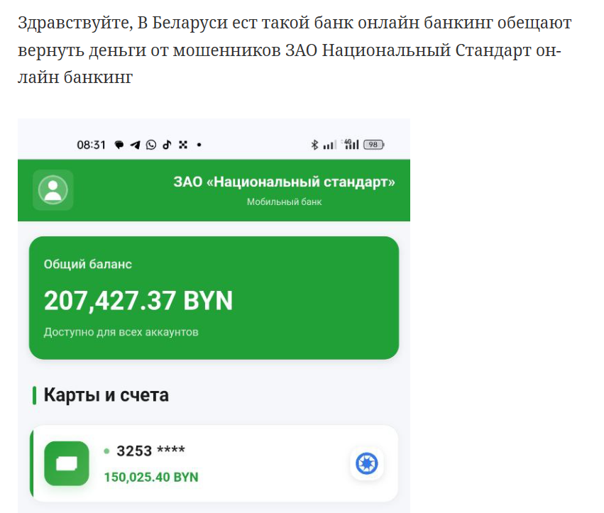 После посещения сайта Bk stand finance com и регистрации пользователей перенаправляют для связи с контактом Bank24online3, отзывы о котором встречаются преимущественно негативные. Люди пишут, что от них требуют более 200 долларов за проведения различных операций, связанных с процедурой возврата средств. Все говорит о том, что это мошенники, которые стараются дополнительно развести тех, кто уже попался на скам ранее. Они прикрываются иностранным банком, в котором у пользователя не будет возможности открыть счет как гражданина Беларуси.
