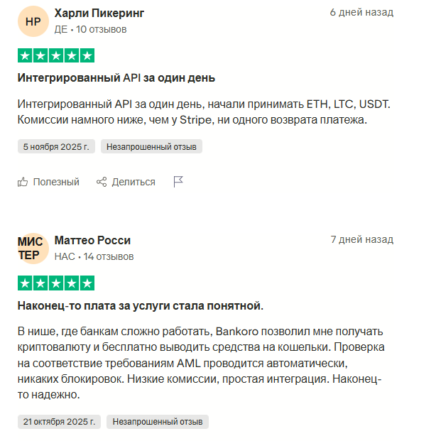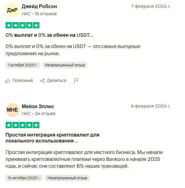 На Trustpilot нашлось множество отзывов о bankoro io. И вот что бросается в глаза – все они положительные. Ни одного негативного комментария. Ни одного нейтрального. Сплошные пятерки и восторги. Такая картина редко бывает у реальных сервисов.
