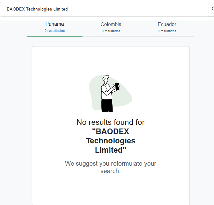 Компанию якобы контролирует BAODEX Technologies Limited из Панамы. За фиат отвечает EXCHANGE BAODEX LIMITED. Но мы проверили реестр компаний в Панаме. Таких компаний там нет.