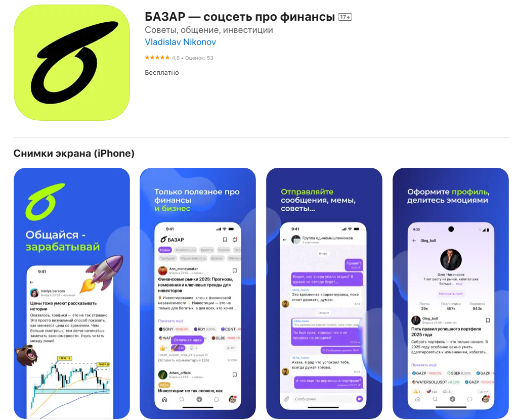 Следить за публикациями и общаться с другими инвесторами в социальной сети «Базар» можно через официальный сайт и в приложениях для мобильных устройств.