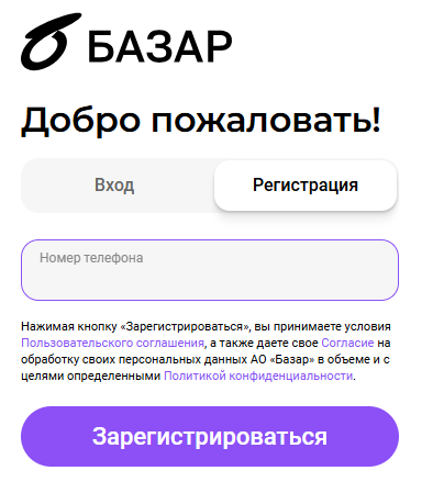 Регистрация аккаунта в социальной сети «Базар» производится по номеру мобильного телефона. На него отправляют код для подтверждения контактных данных. После проверки пользователь будет перенаправлен в раздел «Профиль».