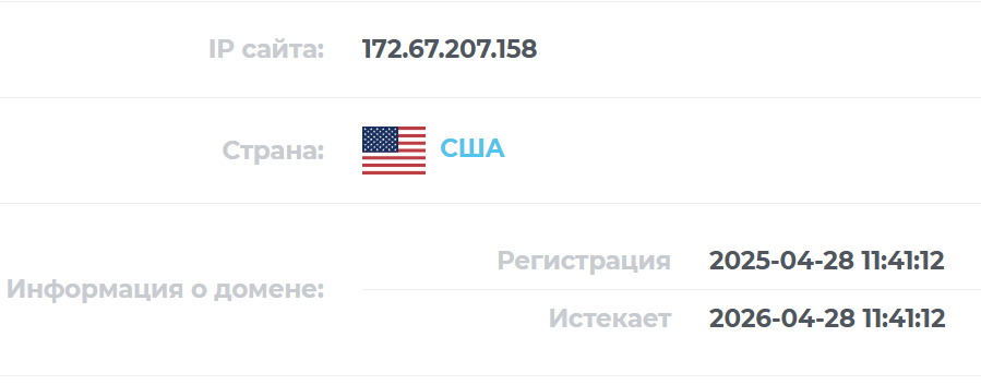 Брокерская компания ведет деятельность и предлагает услуги через сайт Bbitkase net. Проверка показала, что создатели постарались максимально закрыть все сведения о домене. При этом оказалось, что сервер базируется в США, а начало деятельности датируется только 28 апреля 2025 года.