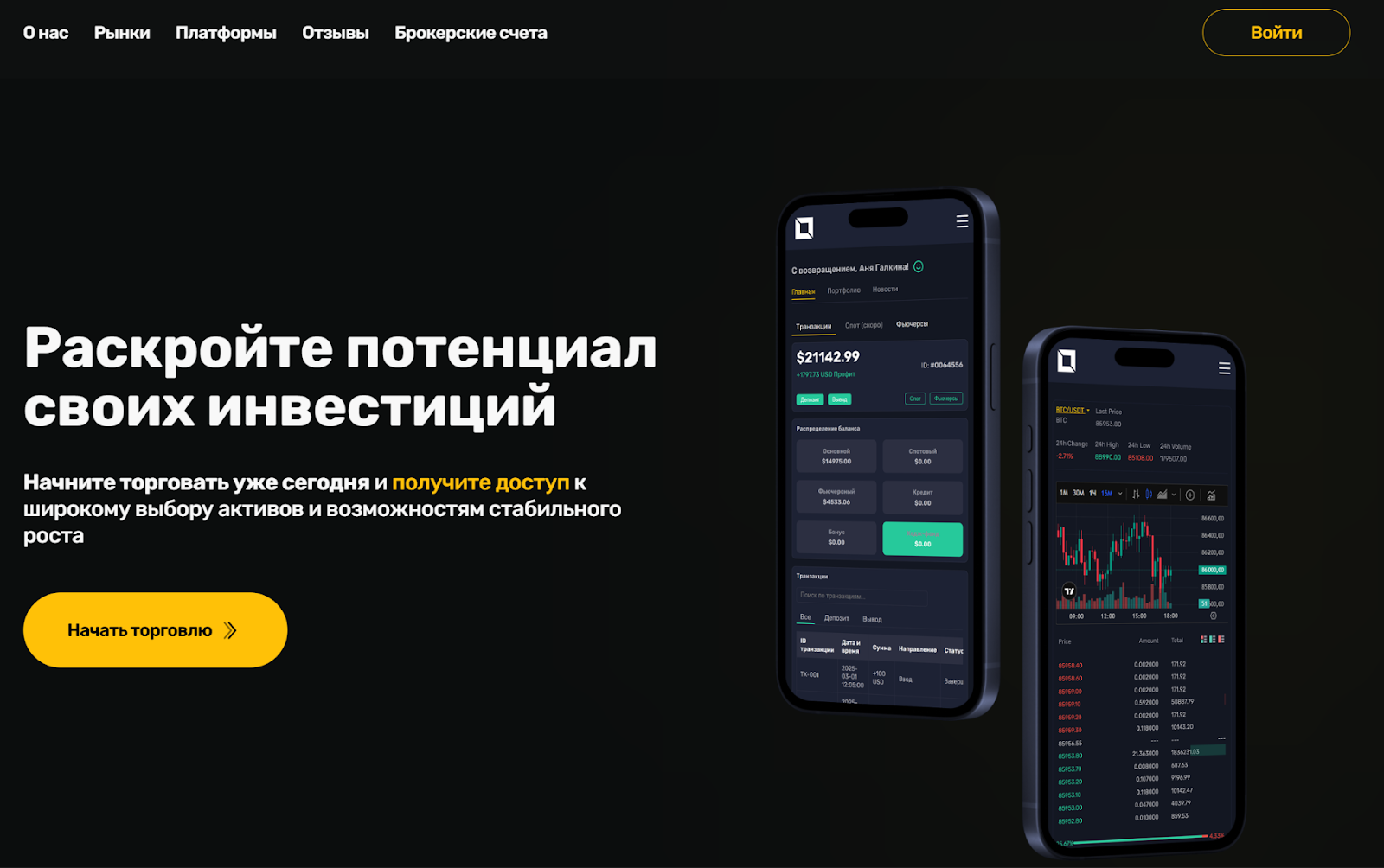 Платформа брокера поддерживается на разных устройствах. Ее можно использовать на компьютерах и мобильных телефонах. Для торговли достаточно пополнить баланс и выбрать счет. После этого можно управлять вложениями и контролировать успехи онлайн.