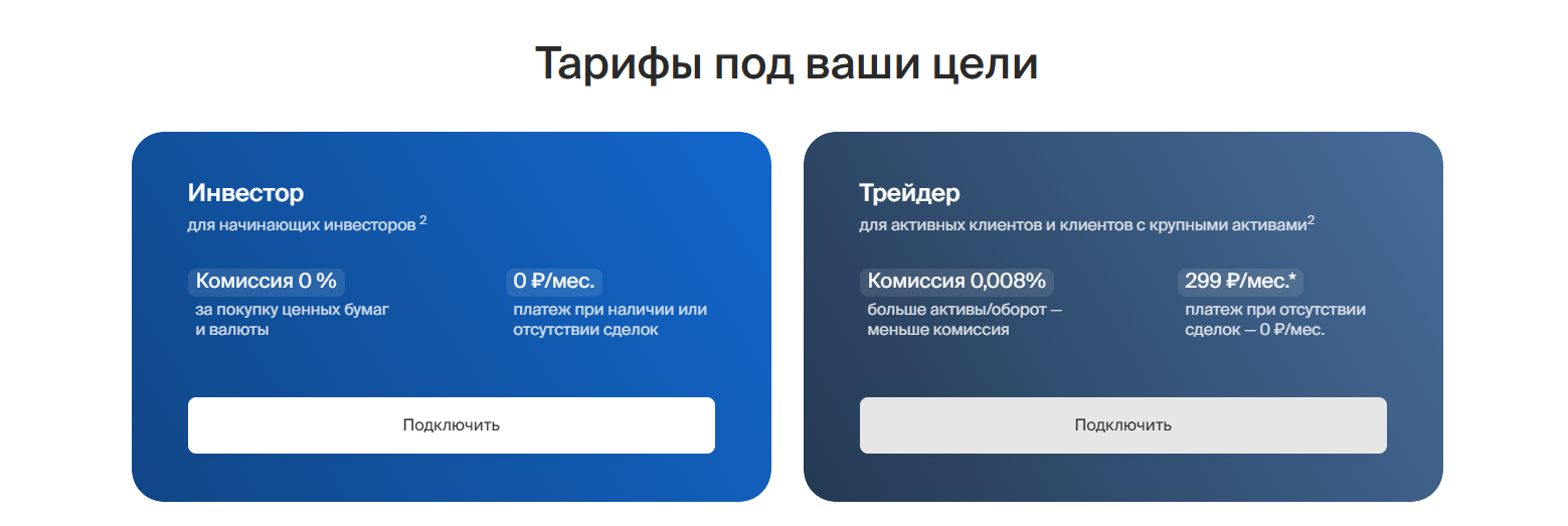 БрокерКредитСервис на своей платформе делит клиентов на 2 типа: инвестор и трейдер. В зависимости от этого будет изменяться комиссия, 0% или 0.008% на сделку соответственно, а также опытным трейдерам с крупным торговым объемом нужно платить 299 рублей ежемесячно. Также новичкам предлагают бесплатные короткие уроки после регистрации на Bcsru, которые длятся 15-30 минут каждый.