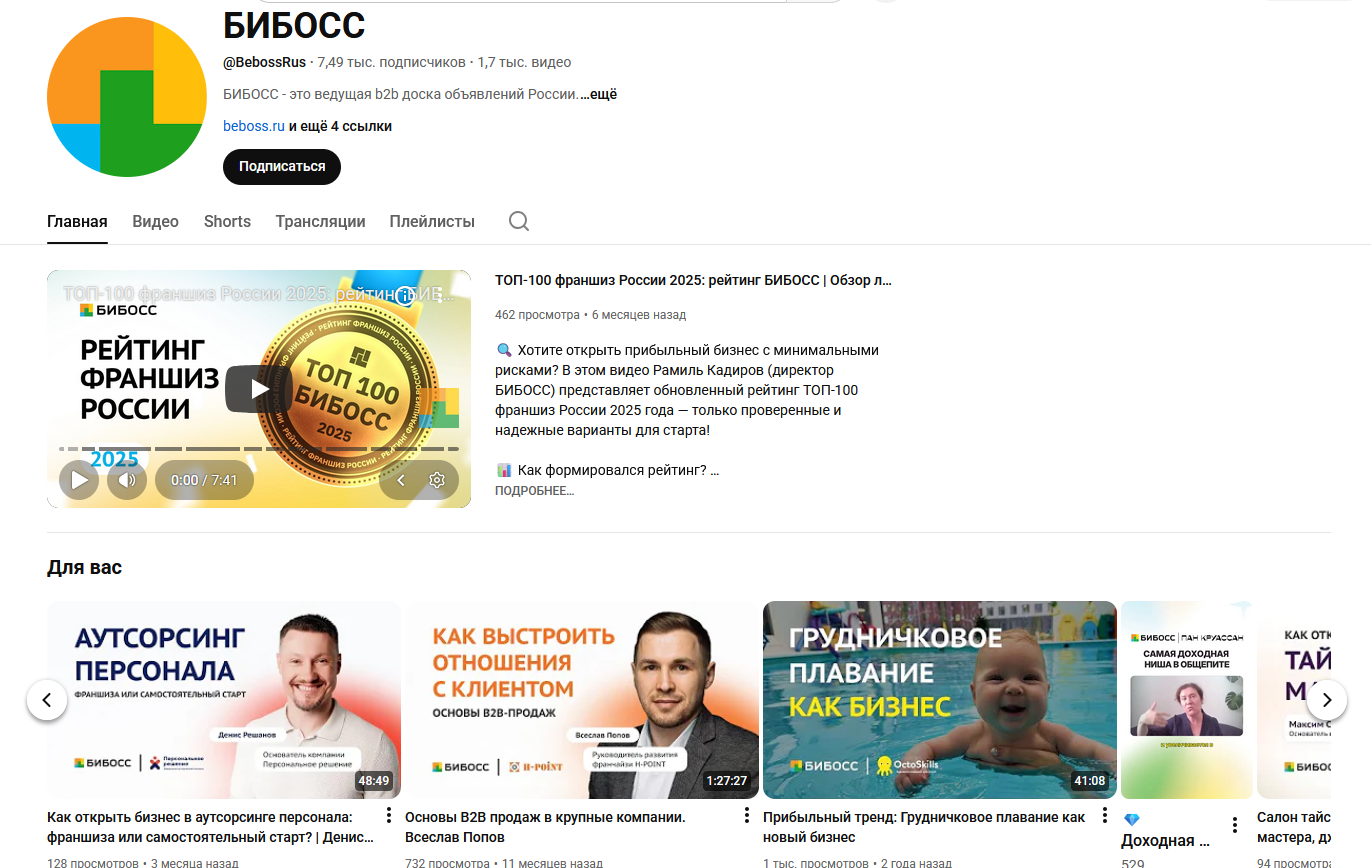 Там, по состоянию на конец ноября 2025, более 7 тыс. подписчиков и свыше 1,7 тыс. видео. Только активность выхода новых видеороликов о Beboss и количество просмотров снижается.
