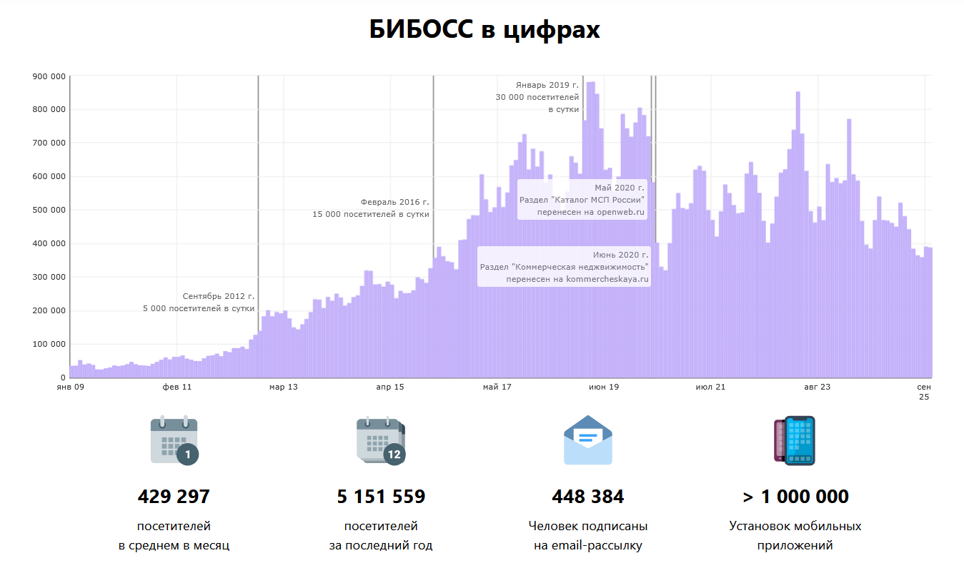 Судя по иконографике, ежемесячно портал посещает 430 тыс. человек.