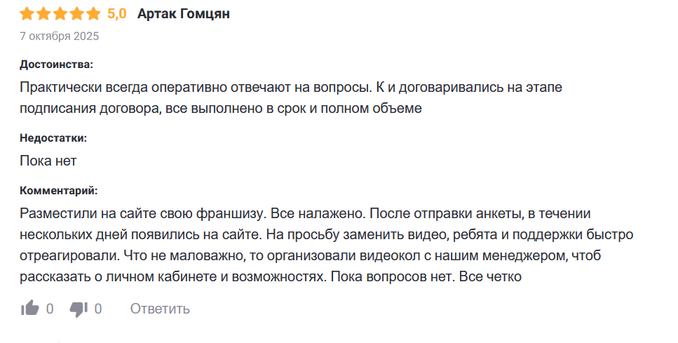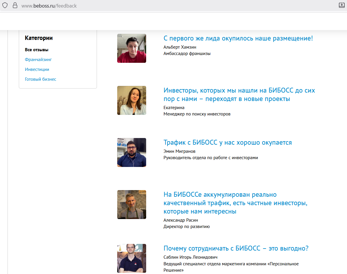- в интернете есть положительные отзывы о том, что через Beboss удается получить заявки или продвинуть франшизу;