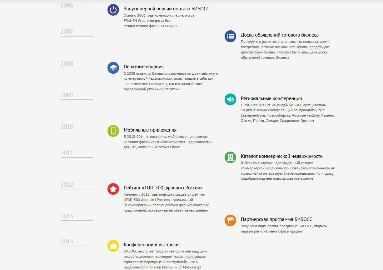 Сайт beboss ru начал работать в 2006, как онлайн-каталог франшиз. Впоследствии на нем появилась доска объявлений о продаже готового бизнеса, коммерческой недвижимости и поиске инвесторов.