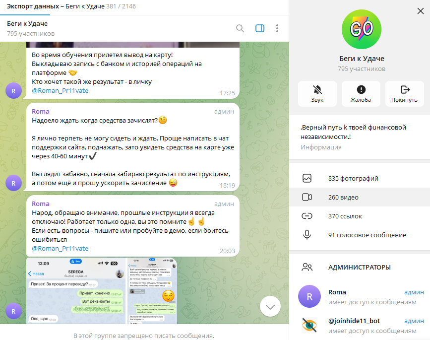 БЕГИ К УДАЧЕ – сообщество в Телеграм, созданное пользователем с ником Роман Приват. Автор заявляет, что предлагает пользователям схемы для работы с онлайн-казино, с которыми якобы можно гарантированно выигрывать. Сам эксперт говорит о том, что зарабатывает таким образом уже не первый год. Но при этом проект получил преимущественно отрицательные отзывы. Мы провели проверку проекта и деятельности автора.