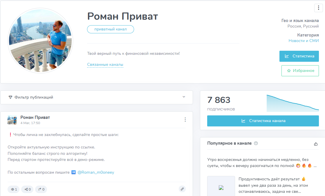 Однако от лица автора ведется огромное количество и других сообществ, а его схема работы остается неизменной. Эксперт представляется аудитории не только как Роман Приват, но и как Роман Кудрин, а также он известен под ником Роман П.