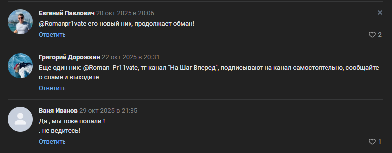 Негативные отзывы о Роман Приват представлены на разных платформах. Так, например, один из пользователей пожаловался на то, что он потерял деньги на сайте Vegaaaasvulk777 top, он рекламировался Романом: