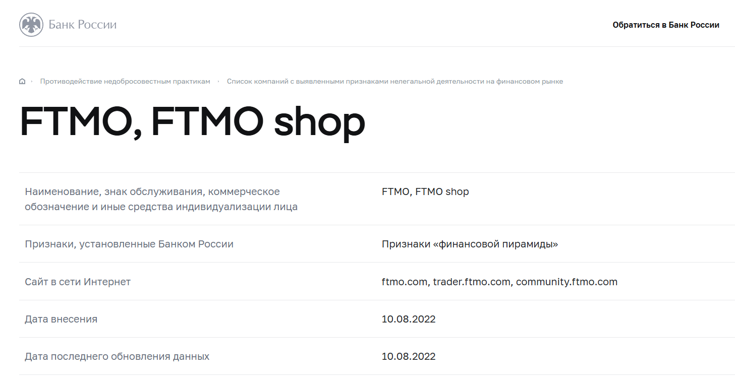 Заметим, что такое сотрудничество может быть сопряжено с повышенными рисками. Платформа FTMO получила весьма неоднозначные отзывы. В России брокер и вовсе заблокирован, так как Центробанк увидел в его работе признаки пирамиды.
