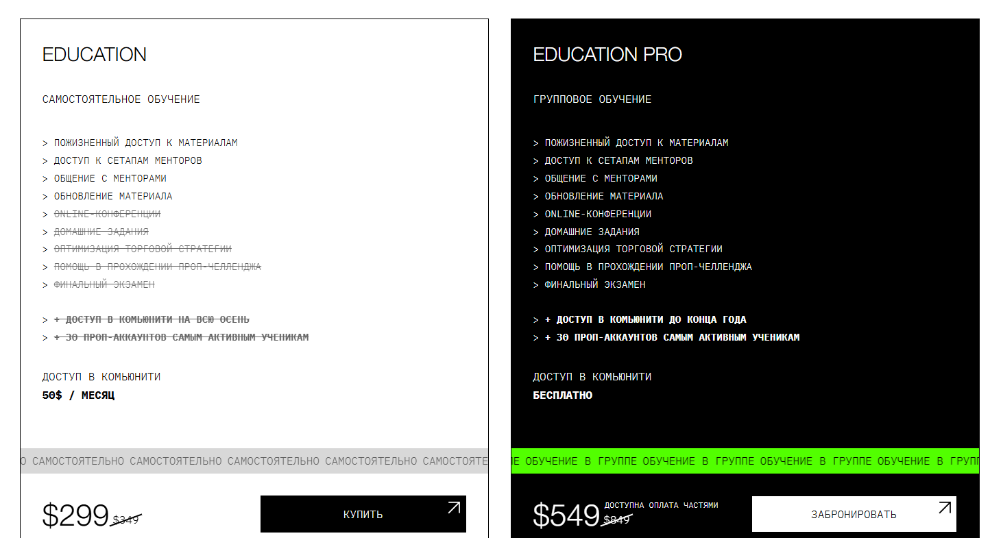 Всего на платформе представлено несколько вариантов обучения. Стоимость группового формата начинается от 299 долларов. Также пользователям предлагается индивидуальная работа с ментором. Стоимость такой услуги начинается от 4 500 долларов.