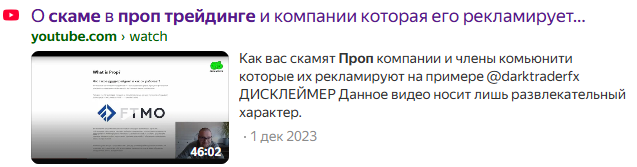 На независимых платформах упоминаний как об образовательном проекте, так и о самом трейдере крайне мало. Но заметим, что работу DARK TRADER связывают со скамом, связанным как раз с продвижением проп-компаний.