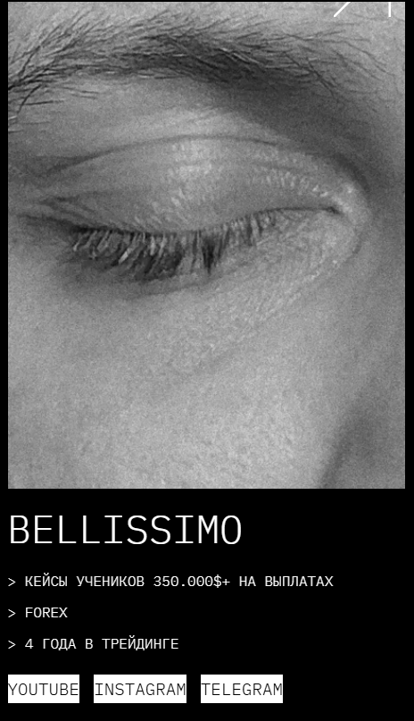 Bellissimo – трейдер, автор собственного блога и преподаватель DARK TRADER EDUCATION. Автор торгует на криптовалютных и форекс рынках. Свои услуги Bellissimo трейдер предоставляет в рамках работы с образовательной платформы. Мы провели проверку деятельности эксперта.