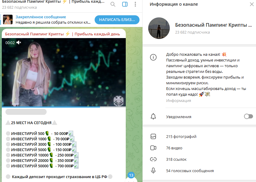 Не будьте идиотами: не связывайтесь с каналом безопасный пампинг крипты. Авторы просто надеятся на наивность пользователей и их желание лёгких денег. Ну какая прибыль может быть с 500 руб. Эти уроды вообще обещают абсолютные небылицы. Таких цифр просто не бывает!