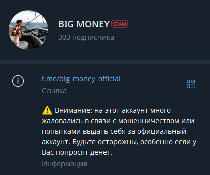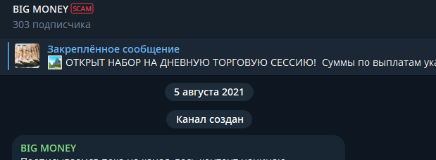 Тг-канал Big Money Official был открыт еще в 2021-м году, но это, по сути, ничего не подтверждает, ведь мошеннические проекты могут существовать годами.