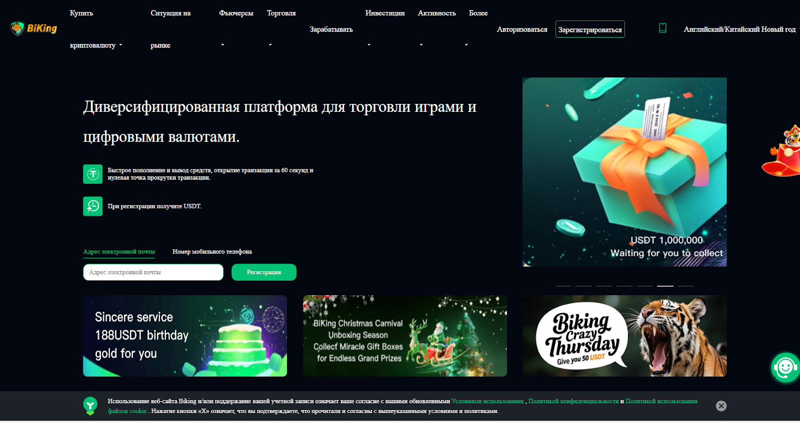 BiKing Exchange — очередная шарашкина контора, которая даже сайт нормально сверстать не может. Информации о создателях ноль, лицензий нет, а обещания о миллионах пользователей — чистый бред. Не ведитесь на их сказки, иначе рискуете остаться без денег.