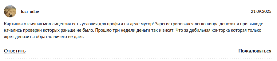 В них они сообщают о мошенничестве, сомнительности легальности опубликованной на сайте лицензии, новых требованиях при попытке вывести деньги и так далее.