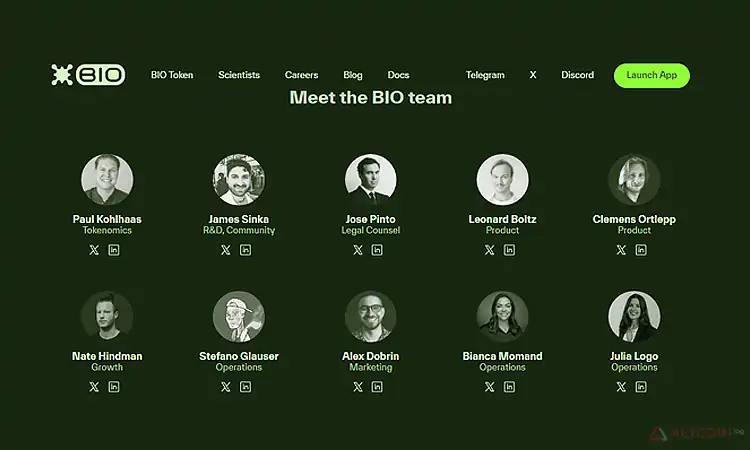 Первое время развитие проекта обеспечивалось за счет того, что участники сообщества собирали пожертвования за счет NFT. Но с созданием проекта BIO произошли изменения. Сначала команда проекта запустила Molecule – проект, связанные с развитием биомедицины, потом – VitaDOA, созданное для изучения долголетия. Достигнутые успехи стали основой для запуска БИО протокол. В команде проекта представлены следующие специалисты: