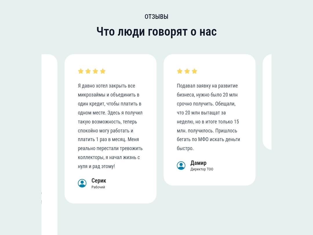 На самом сайте Бирдж финанс размещены несколько отзывов, верифицировать которые невозможно. Один из них заслуживает внимания: пользователь, представившийся директором ТОО, поставил оценку 3/5. По его словам, платформа обещала выдать 20 млн тенге за неделю, однако перечислила только 15 млн — в результате пришлось срочно искать недостающую сумму в МФО. Организация, которая позиционирует себя как надежного финансового посредника, подтверждает публикацией, что не выполняет обещания по суммам и срокам. Но вероятнее всего это обратный пиар, заставляющий думать, что команда вообще способна что-то выплатить.