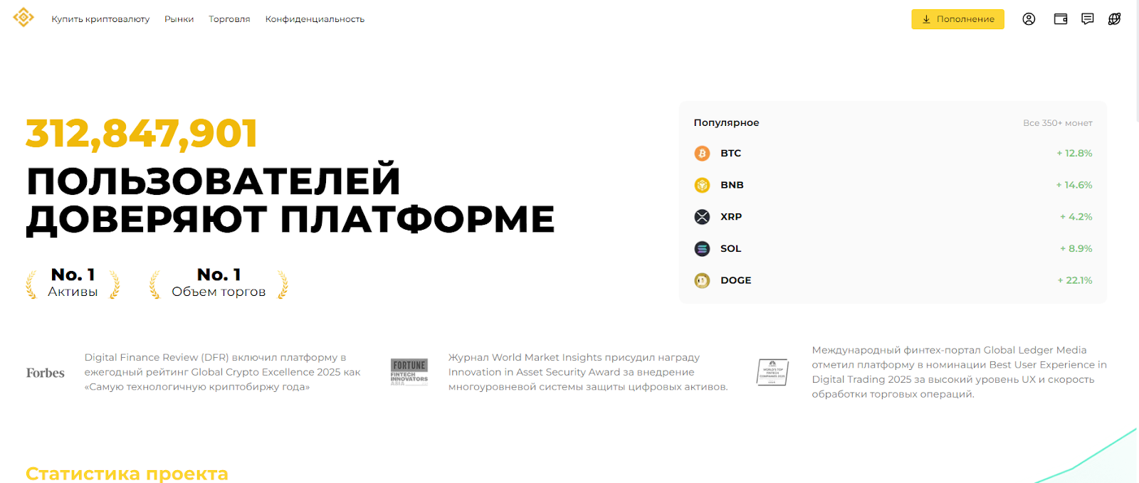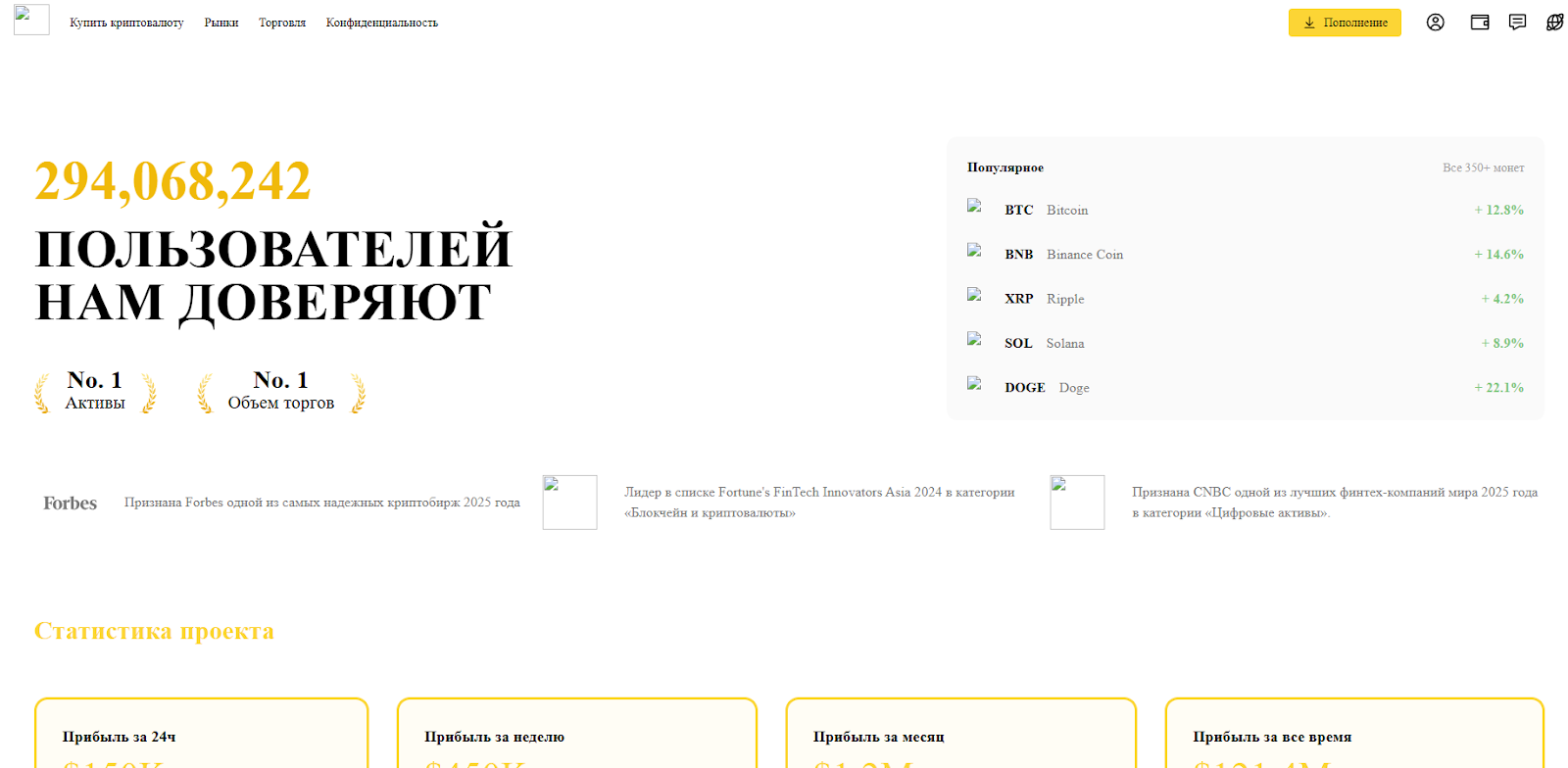 - попытки создателей выдать свою платформу за сайт Бинанса;
