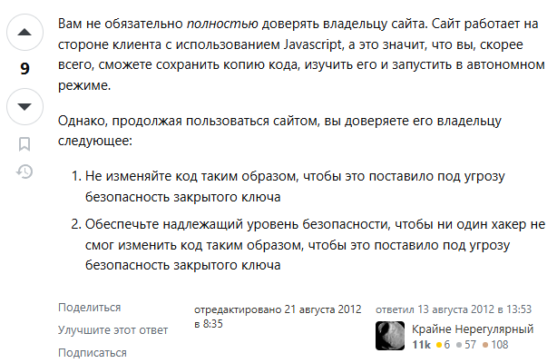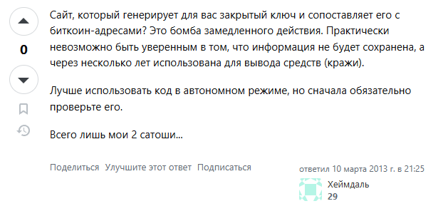 Мнения разделились на два лагеря. Часть пользователей предупреждает об опасности. Главная претензия – невозможно проверить, сохраняются ли данные где-то на серверах. Многие называют такой подход бомбой замедленного действия, ведь владельцы сайта теоретически могут через годы использовать сохраненные ключи для кражи средств.