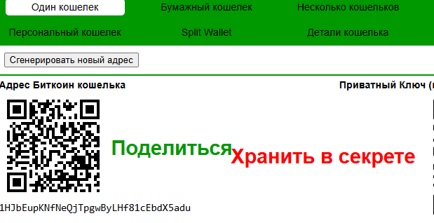 Использовать просто. Выбираешь режим, генерируешь адрес, сохраняешь. Разработчики предупреждают о важности резервных копий. Обновил страницу – старый ключ потерян навсегда. Восстановить его не получится.