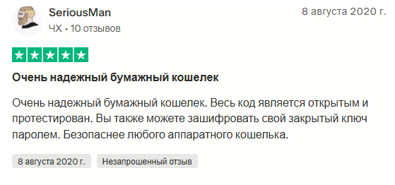Другая часть хвалит сервис за открытый протестированный код и возможность шифрования паролем. Некоторые считают бумажные кошельки от bitaddress org даже безопаснее аппаратных решений. Объясняют это тем, что сайт работает полностью в браузере через JavaScript, а значит можно скачать страницу, изучить код построчно и запустить без подключения к интернету.