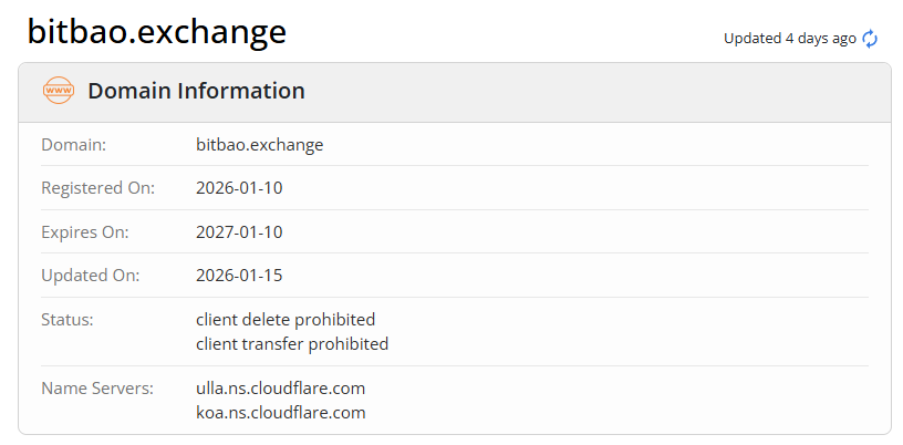 Bitbao Exchange утверждает, что работает более 5 лет и имеет свыше 10 миллионов пользователей, однако проверка домена показывает, что сайт был запущен лишь 10 января 2026 года. Отсутствие рекламы и социальных сетей ставит под сомнение заявленные цифры. Такие несоответствия указывают на возможные риски при работе с этой платформой.