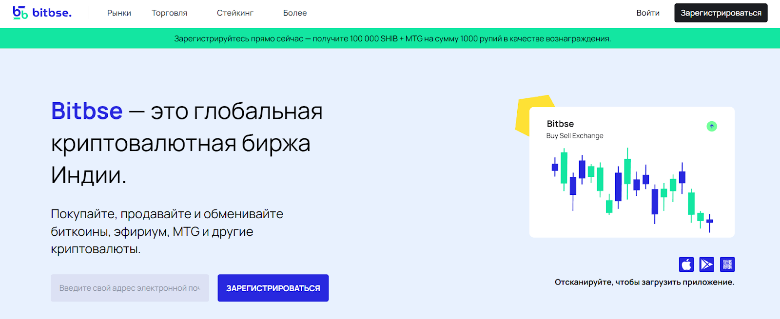 Официальный сайт криптобиржи Bitbse – bitbse com. Можно покупать, продавать и обменивать крипту. Для пополнения счета есть UPI и с банковская карта. Минимальный размер депозита – 100 индийских рупий.