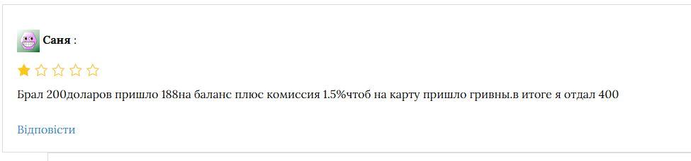При этом есть утверждения, что переплата даже больше, чем представлено на сайте из-за скрытых комиссий при переводе USDT в гривны. Пользователь отдал больше чем в 2 раза больше, чем получил.
