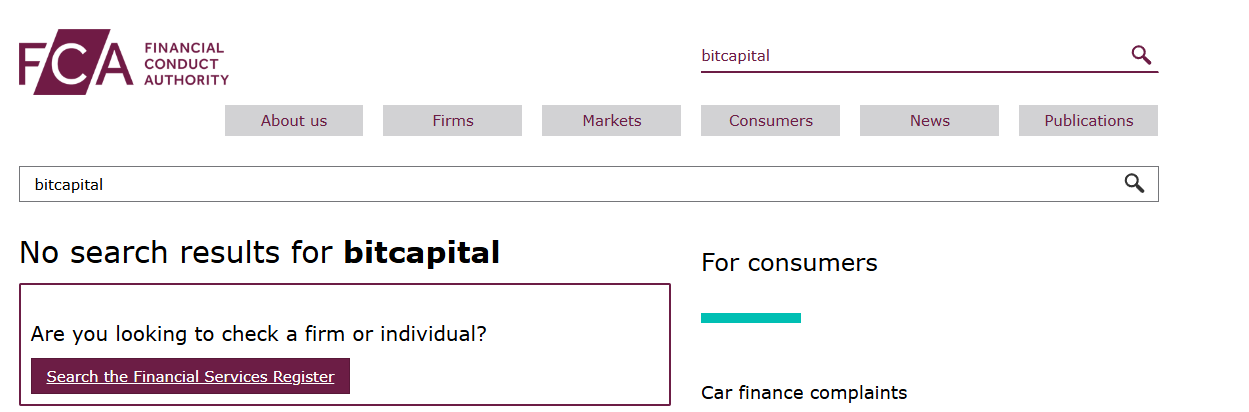 На сайте компании выложена информация о наличии регистрации FCA.