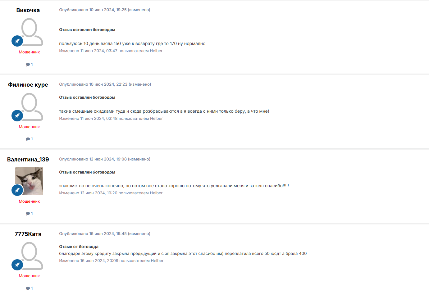 В сети очень много отзывов о работе платформы. При этом большая часть из них помечена информацией о том, что «отзыв оставлен ботоводом»: