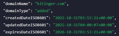 - домену меньше месяца, зарегистрирован 31 октября 2025 года;