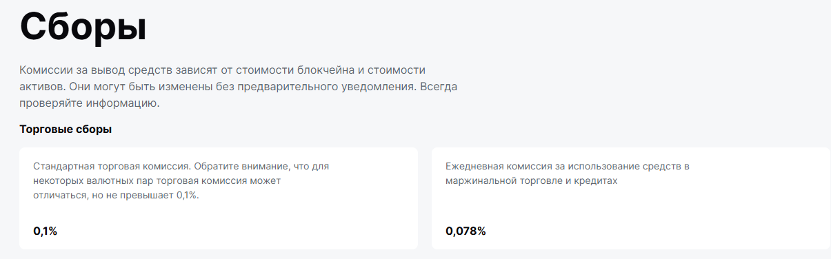 Комиссии за вывод зависят от актива. BTC – 0,003, ETH – 0,1, USDT – 250 долларов. Сеть нужно выбирать правильно. Ошибка может стоить всех денег. Верификация обязательна. Требуются документы, возможна видеопроверка. Стандартная процедура для бирж.