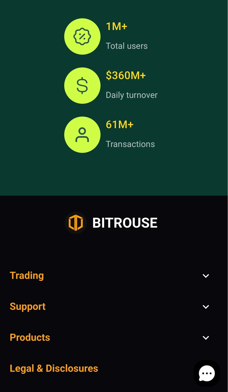 Приведена на платформе и впечатляющая статистика – более 1 миллиона активных пользователей, дневной оборот порядка 360 миллионов долларов. Заявлено, что на Bitrouse пользователей ждет удобный терминал, круглосуточная поддержка и низкие комиссии вкупе с широким ассортиментом торговых активов.