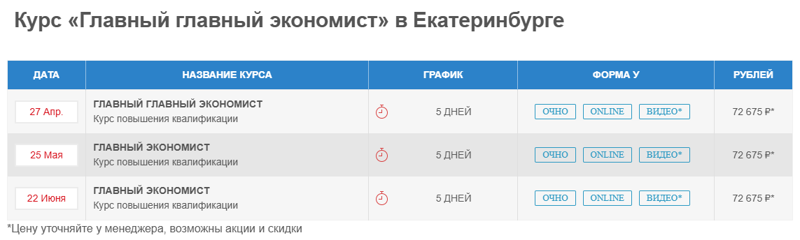 Стоимость некоторых интенсивов указали, и она оказалась впечатляющей. За 5-дневное обучение здесь запрашивают 72 тысячи рублей. Заниматься можно как очно в Екатеринбурге, так и онлайн, однако не во всех случаях. При выборе важно обращать внимание на столбце «Форма» в таблице.