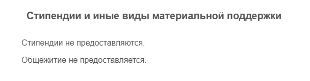 Некоторые странности проекта мы все-таки можем отметить. Среди них — наличие на сайте пустых либо неработающих вкладок. Непонятно, зачем создавать страницу с информацией о стипендиях, если учреждение их не предоставляет.