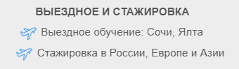 Отдельно на сайте обозначена возможность обучения в Сочи, Ялте, а также за границей, но данных об этом очень мало. К тому же тут вряд ли учтены сегодняшние реалии, ведь ресурс довольно долго не обновляли.