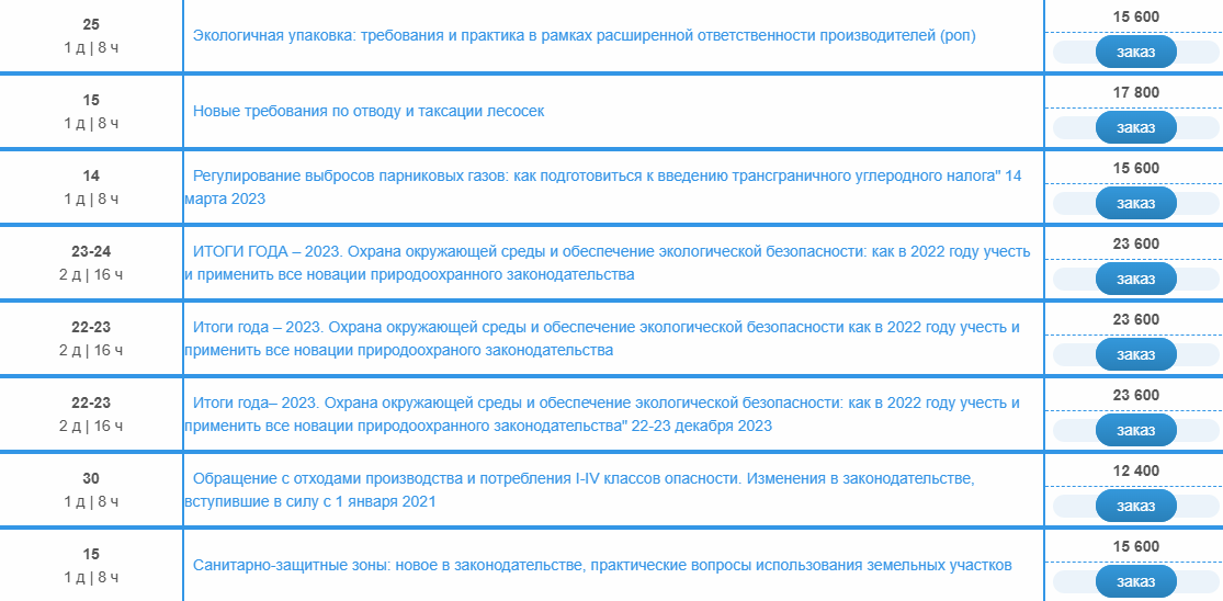 Отметим, что далеко не по всем направлениям есть полноценное обучение. Например, в разделе «Экология» мы обнаружили только однодневные мероприятия (вероятно, лекции) за 10–20 тысяч рублей.