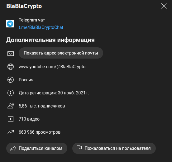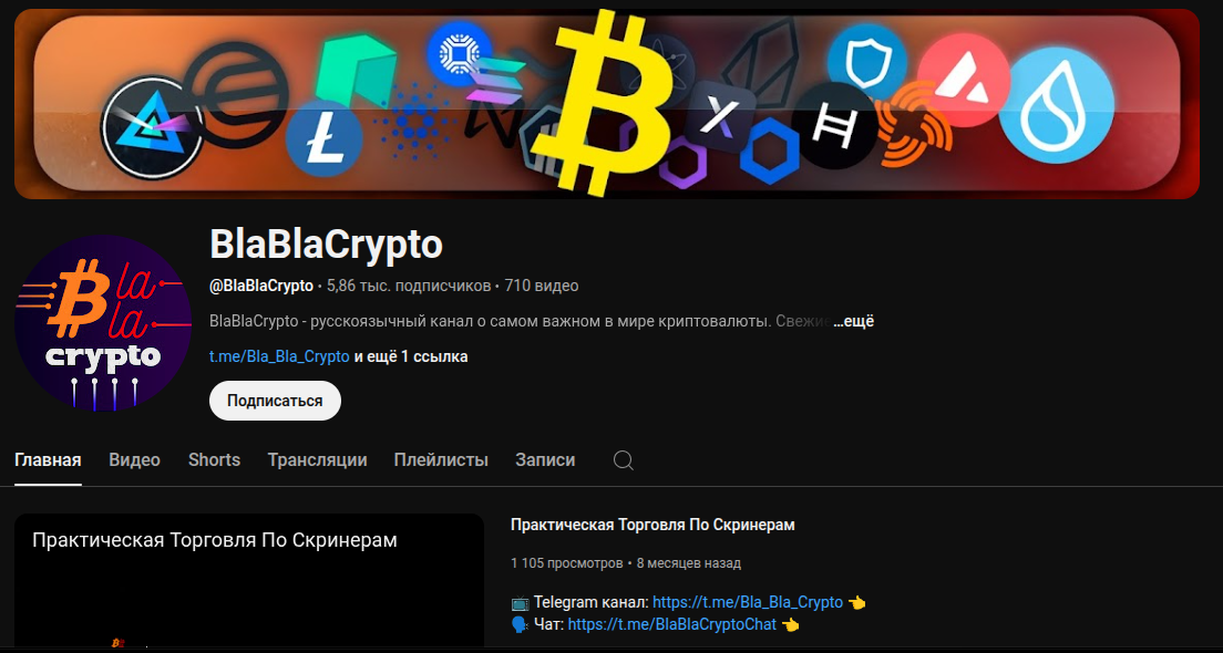 За почти 4 года деятельности активность аудитории на ютубе BlablaCrypto составила более 660 000 просмотров, что говорит об заинтересованности подписчиков в контенте. К слову о последнем, видео тематические, т.е. с разъяснением особенностей рынка, объяснением сути торговли по скринерам.
