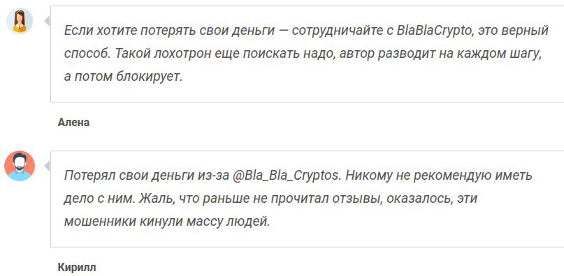BlablaCrypto: отзывы о ТГ, обзор на Bla Bla Crypto, какие услуги у трейдера, репутация в сети