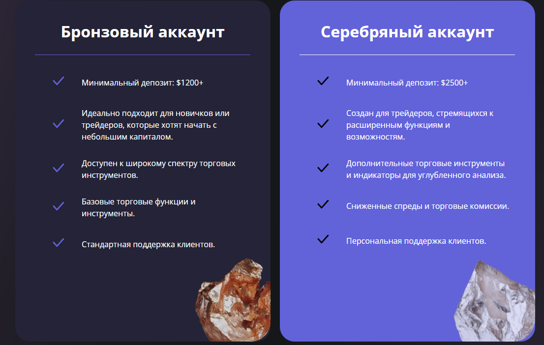 - «Бронзовый аккаунт» для новичков с минимальным депозитом в $1,200.