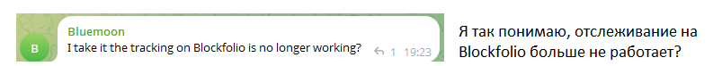 Подписчики комьюнити «Блокфолио» в ТГ возмущены отсутствием работоспособности финансового сервиса.