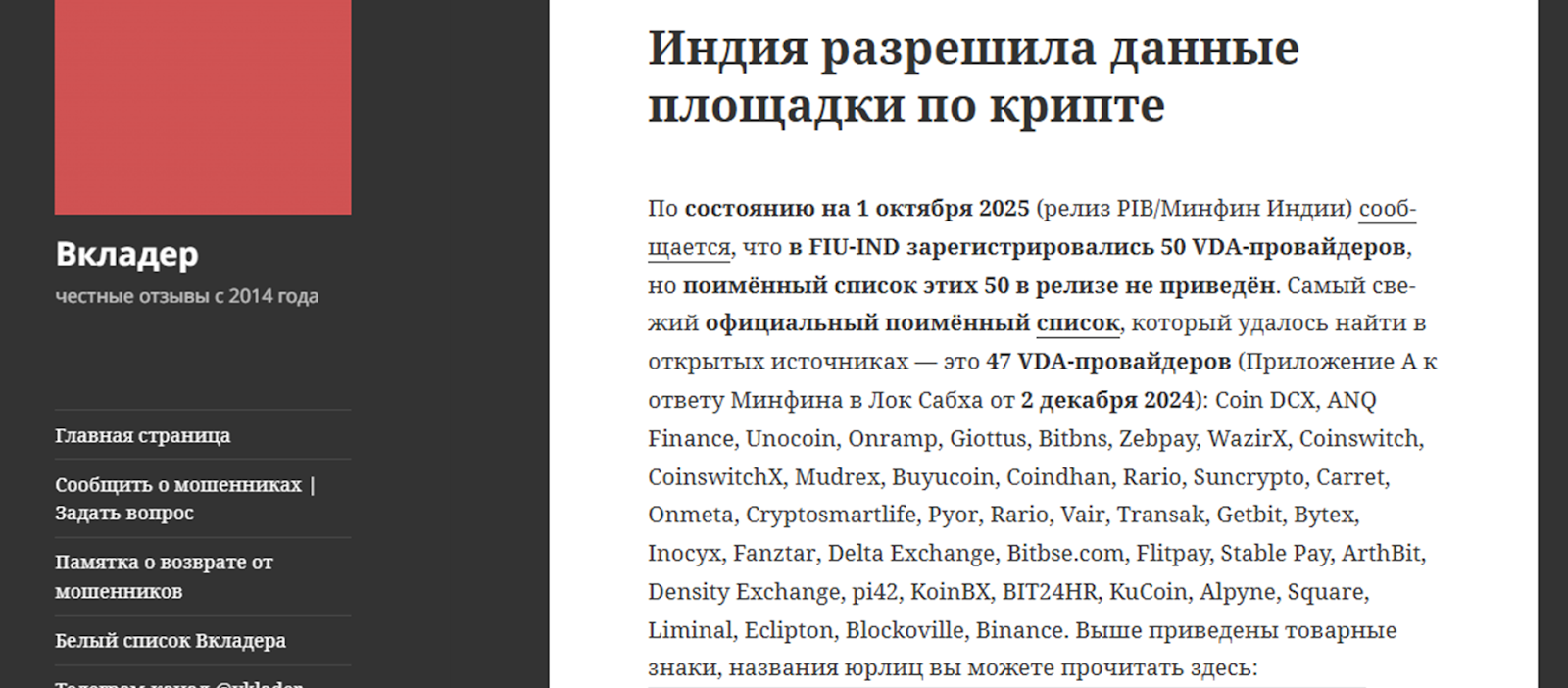 В ней сказано, что платформа включена в перечень легальных бирж Индии. Но подлинность данной информации неизвестна.