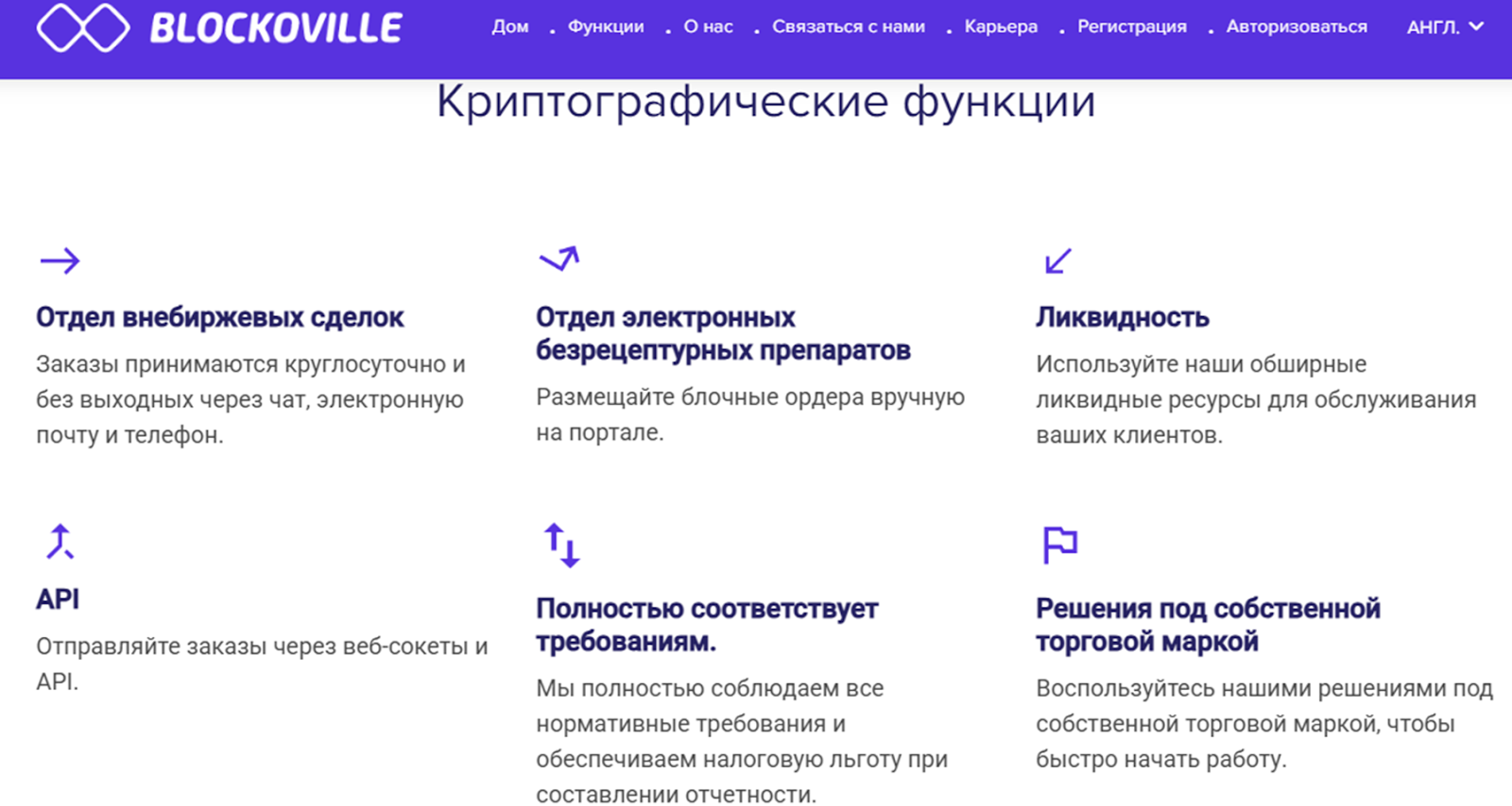 Blockoville Top Secured Crypto Exchange не предоставляет полной информации о предложенных торговых условиях. На сайте проекта лишь коротко перечислены основные направления деятельности. Это: