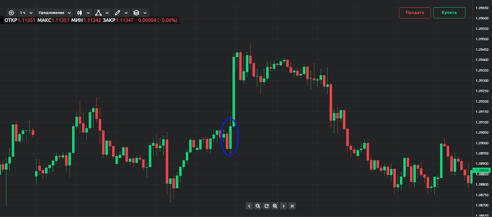 Использование паттерна на часовом графике валютной пары EUR/USD.