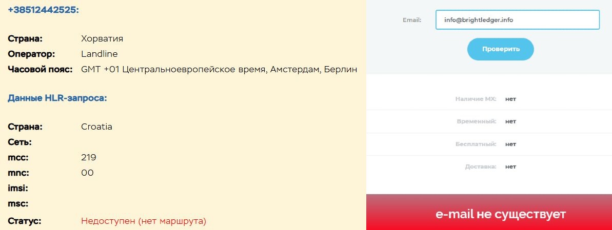 Однако проверка показала, что почты не существует, а телефон недоступен.