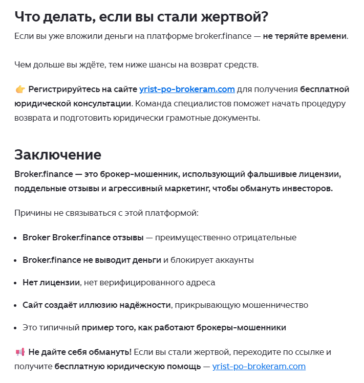 Проект Broker Finance отзывы в сети не получил. Зато можно найти целый ряд гневных обзоров, в которых рассказываются о том, что это проект-однодневка, связанный с мошенничеством.